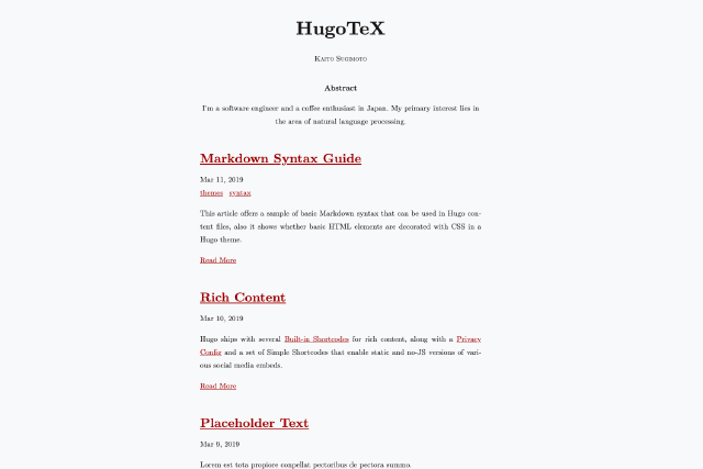 LaTeX style hugo theme