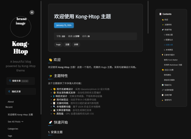 A modern, elegant Hugo theme with glassmorphism design. Built on Poison with extensive customizations including tagscloud, timeline posts, modern article pages, and comprehensive dark mode support.