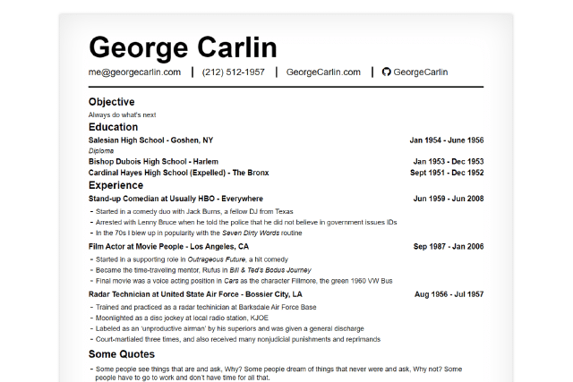 This is a simple resume that you can print or host on the web